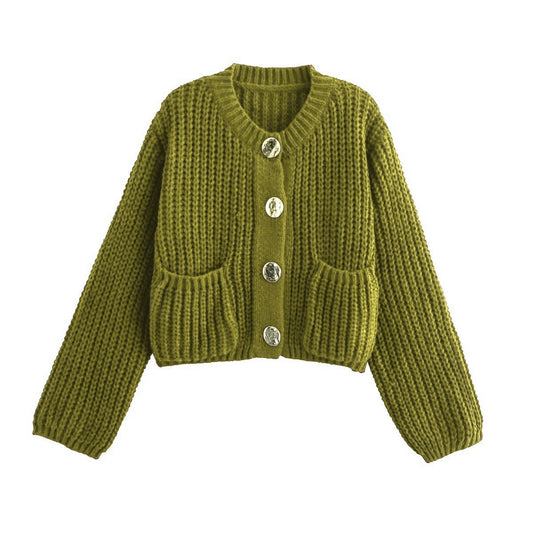 Damen kuschelige Strickjacke mit dekorativen Knöpfen und praktischen Taschen Merchesia