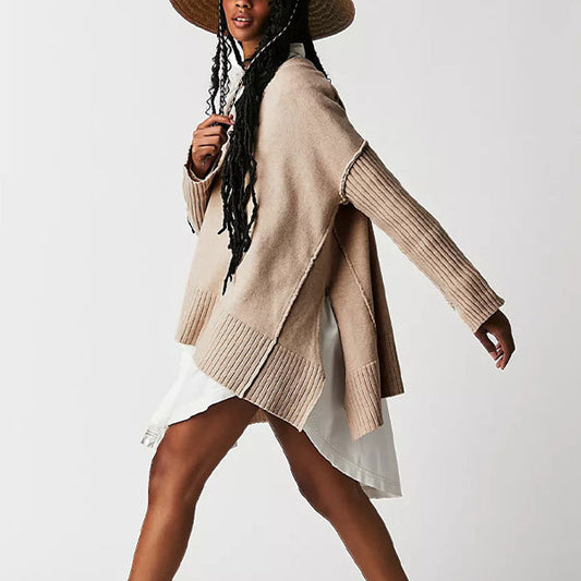 Damen lässiger Strickpullover mit weiten Ärmeln und Rippenstruktur Merchesia