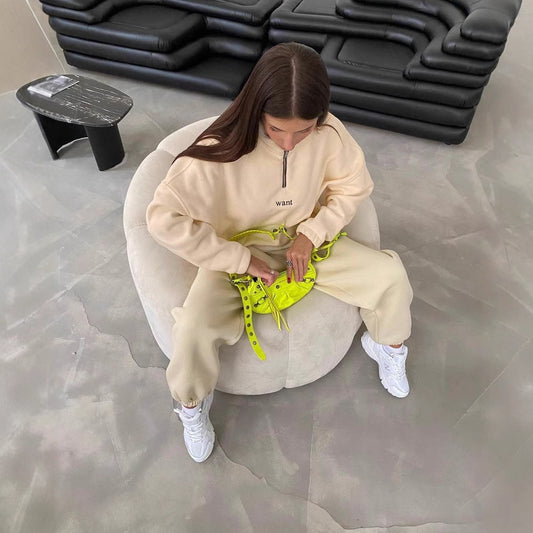 Damen modischer Fleece-Pullover mit Halb-Reißverschluss und überschnittenen Schultern Merchesia