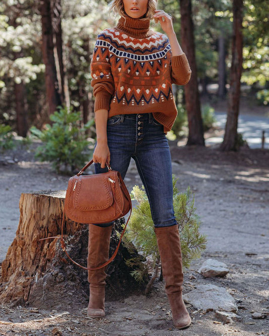 Damen modischer Strickpullover mit geometrischem Muster und hohem Kragen Merchesia