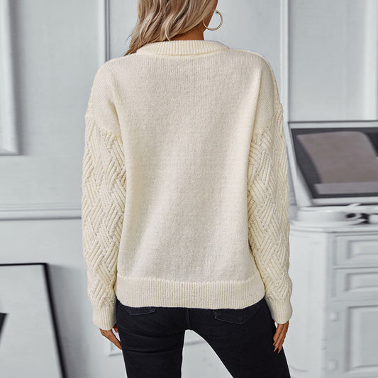 Damen Strickpullover mit modischen Ausschnitten und strukturierten Ärmeln Merchesia