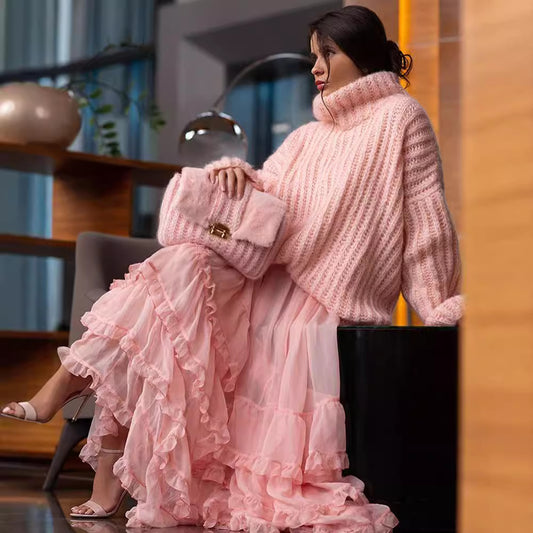Damen Grober Strickpullover mit hohem Kragen Merchesia