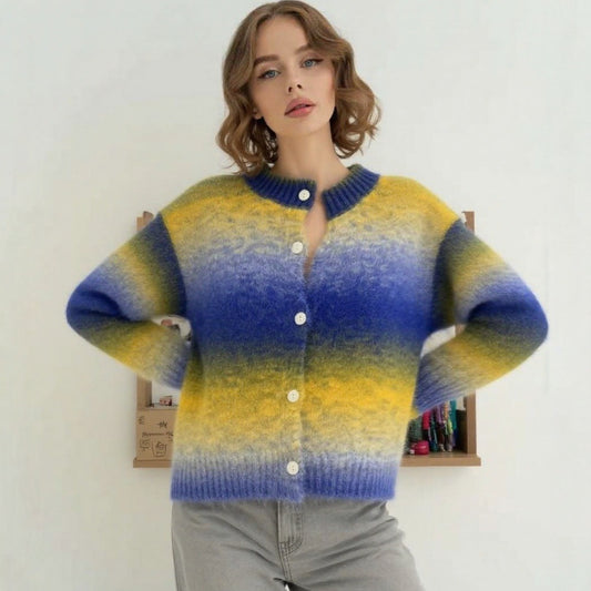 Damen Strickjacke mit modischem Blockstreifenmuster und klassischem Knopfverschluss Merchesia