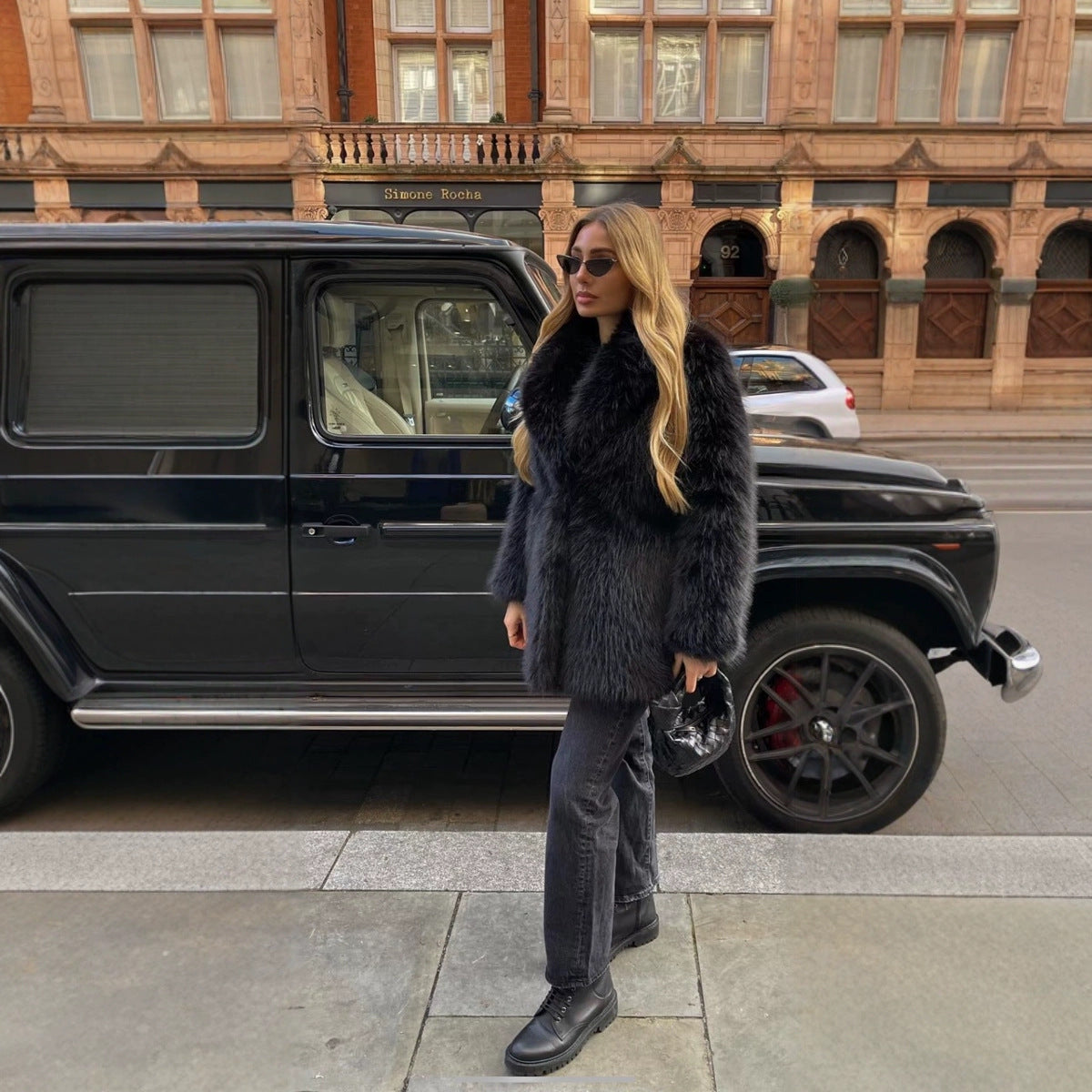 Verleihen Sie Ihrem Kleiderschrank einen Hauch von Glamour mit diesem zeitlosen Kunstpelzmantel von Merchesia und ziehen Sie alle Blicke auf sich!