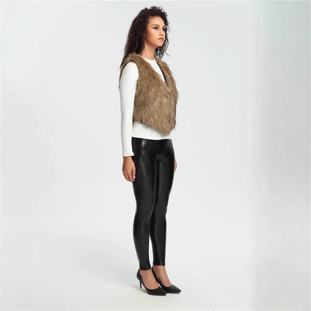 Damen Hochwertige Kunstlederjacke im figurbetonten Schnitt Merchesia