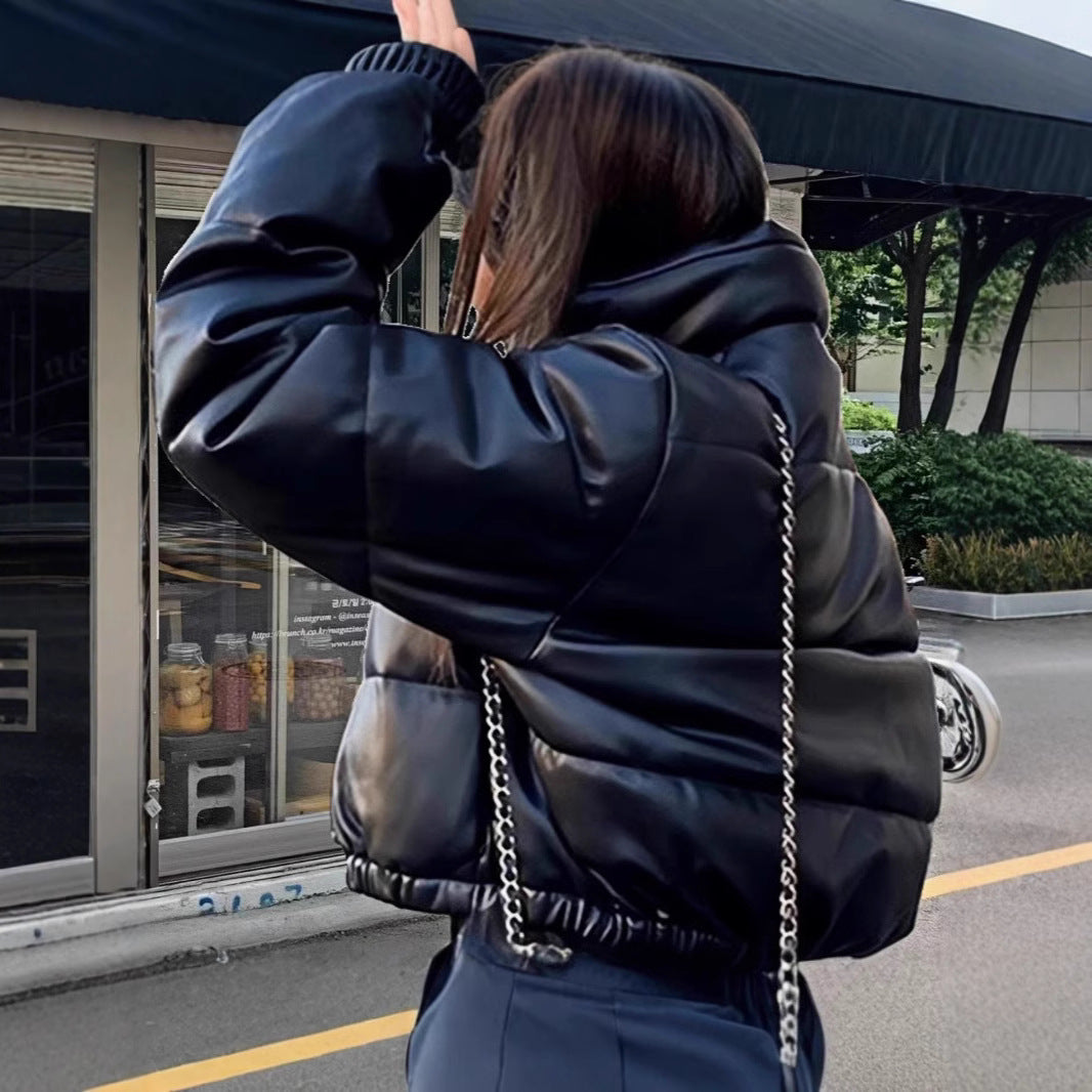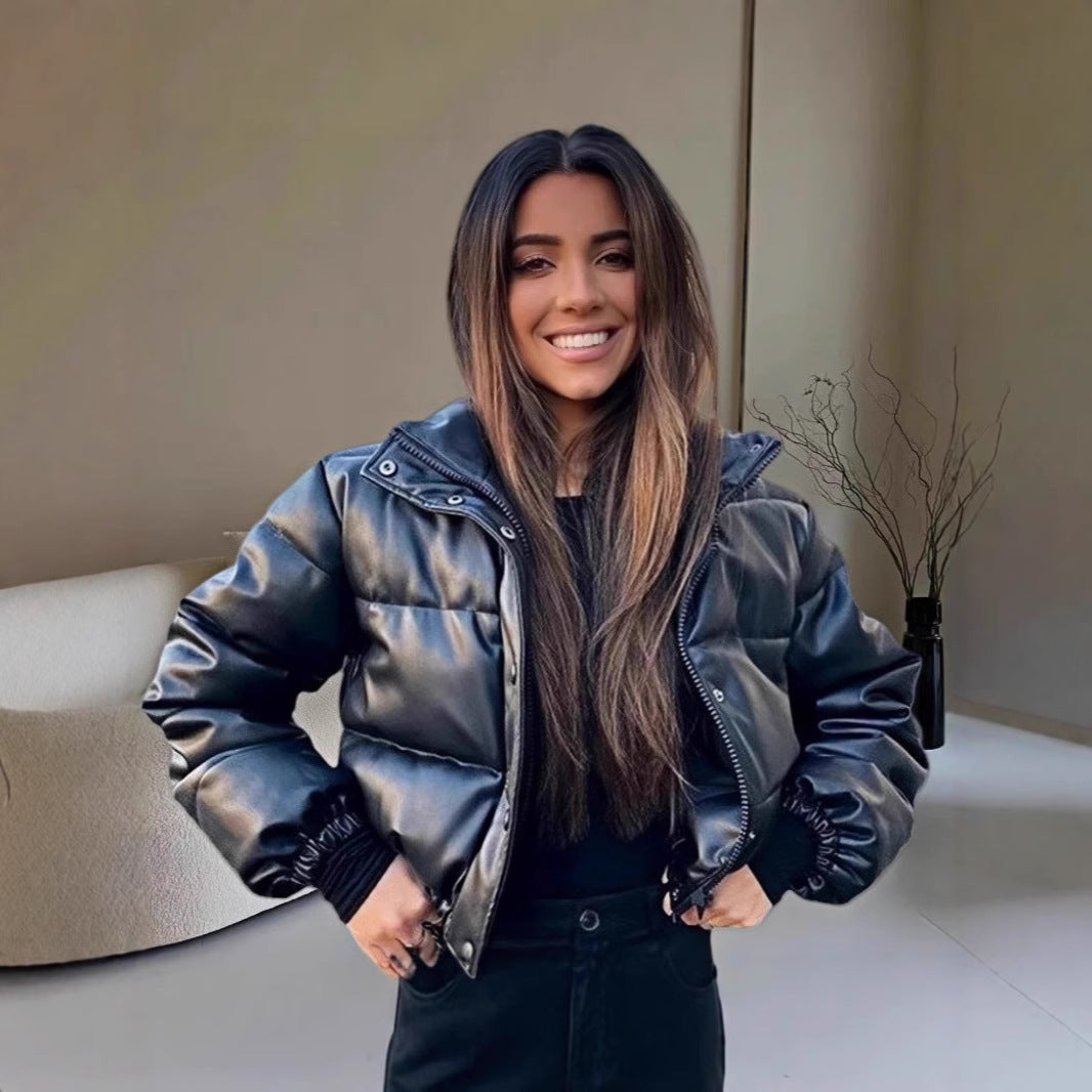 Damen Hochwertige Kunstlederjacke im figurbetonten Schnitt Merchesia