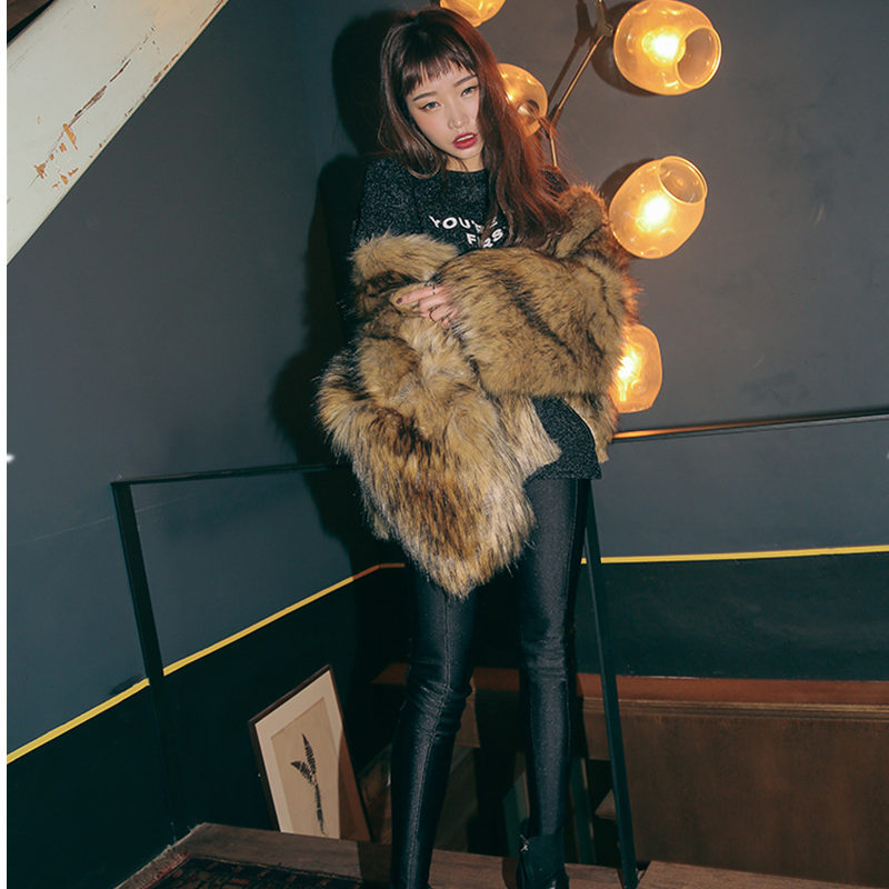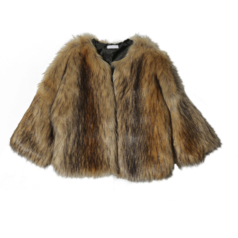 Damen Glamouröser Kunstpelz-Cropped-Mantel mit voluminösen Ärmeln Merchesia