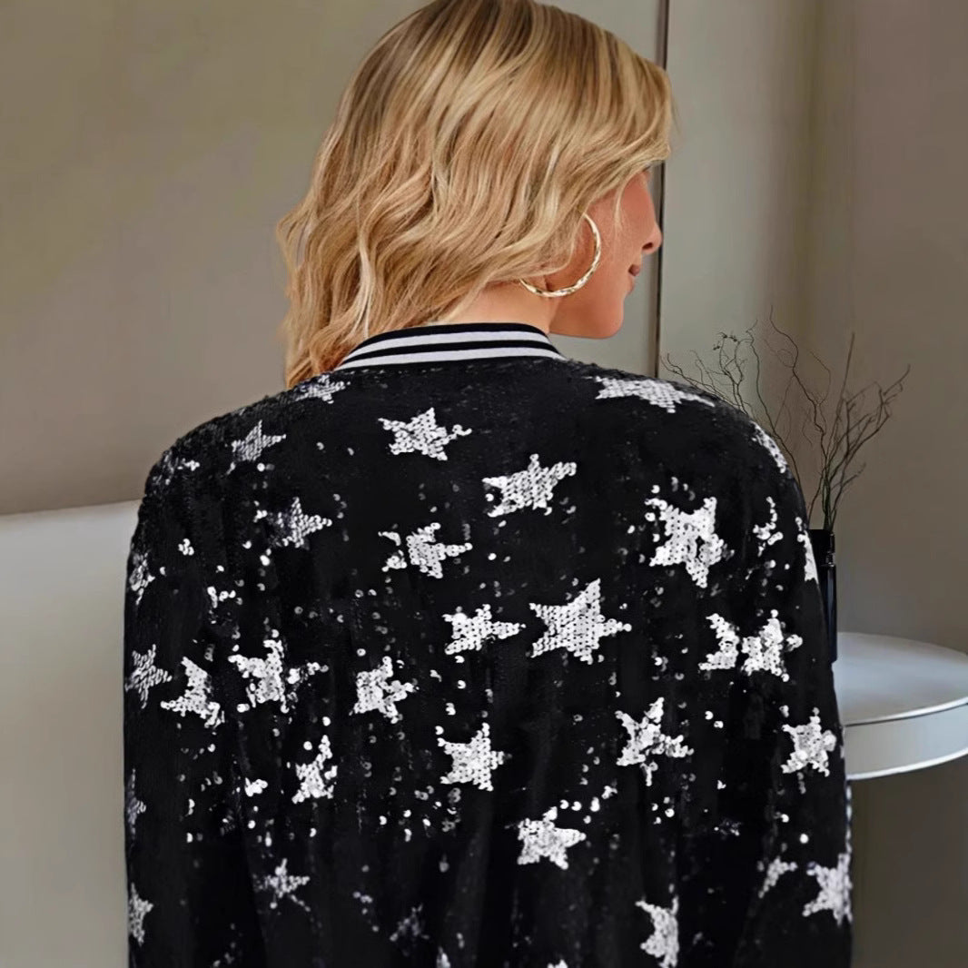 Damen Glitzernde Bomberjacke mit Sternen-Motiv Merchesia