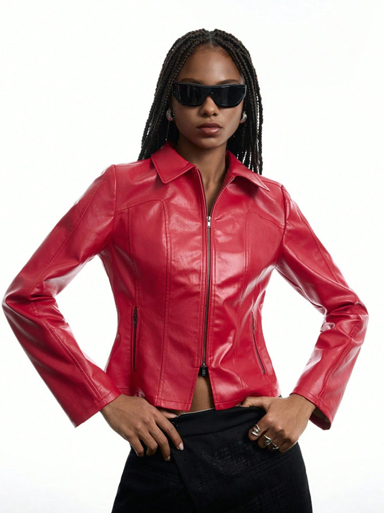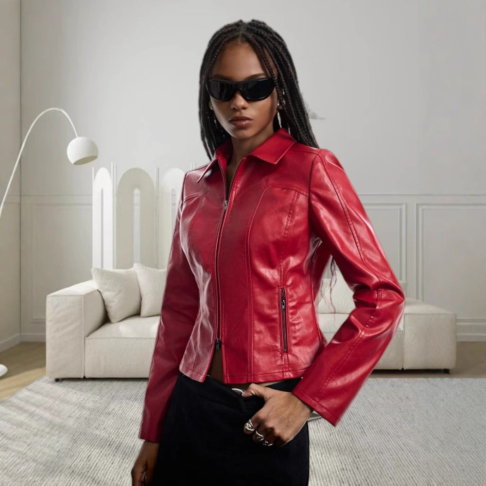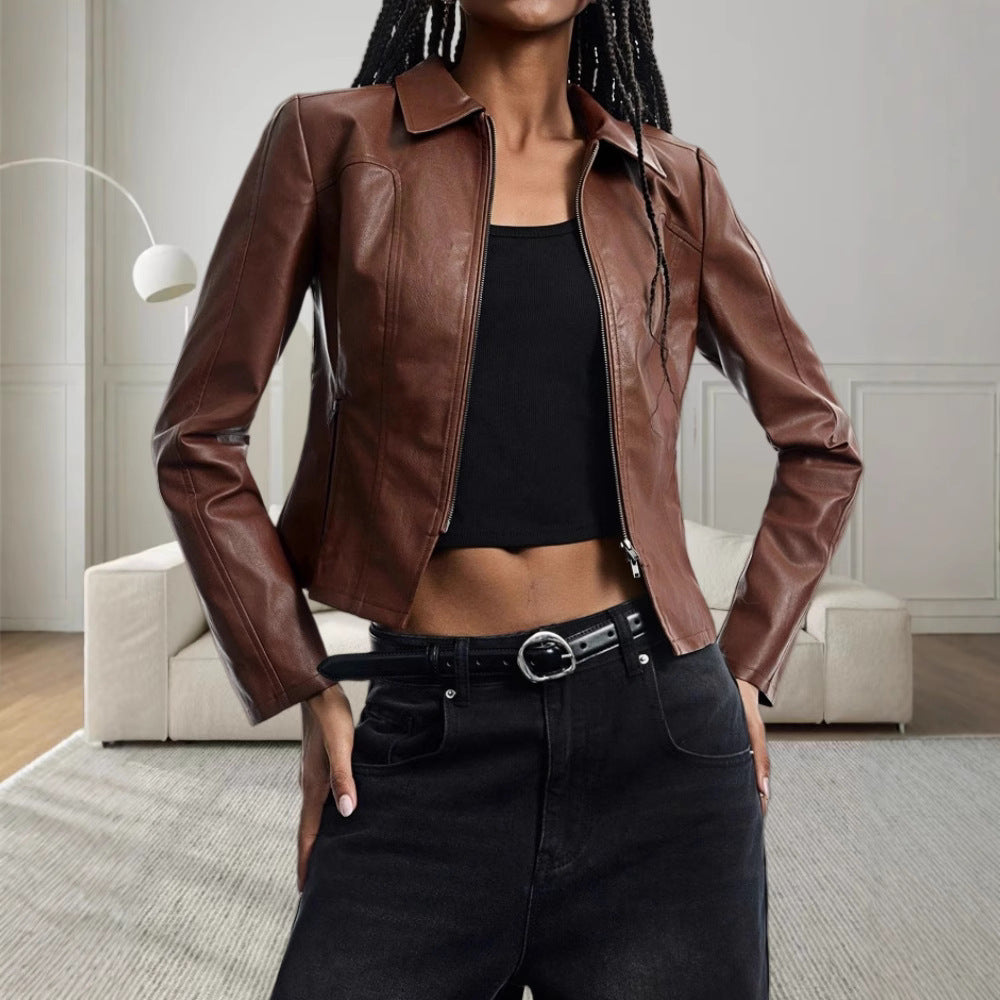 Damen Hochwertige Kunstlederjacke im figurbetonten Schnitt Merchesia