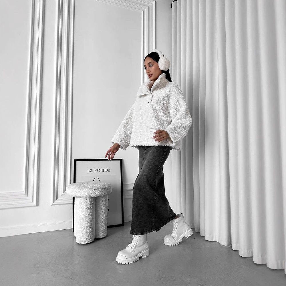 Entdecken Sie den perfekten Begleiter für die kühleren Tage mit unserem Damen kuscheliger Fleece-Pullover im Casual-Style von Merchesia. Dieser stilvolle Pullover kombiniert Komfort und trendiges Design, ideal für jeden Anlass.