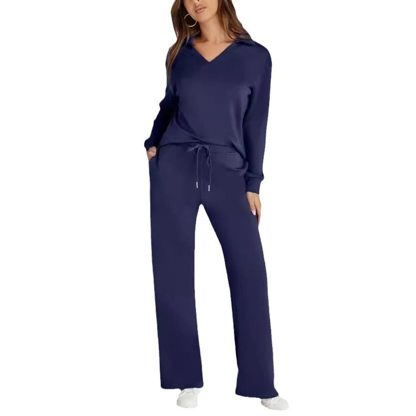 Damen lässiger Freizeitanzug mit leichtem V-Ausschnitt und bequemen Bund Merchesia