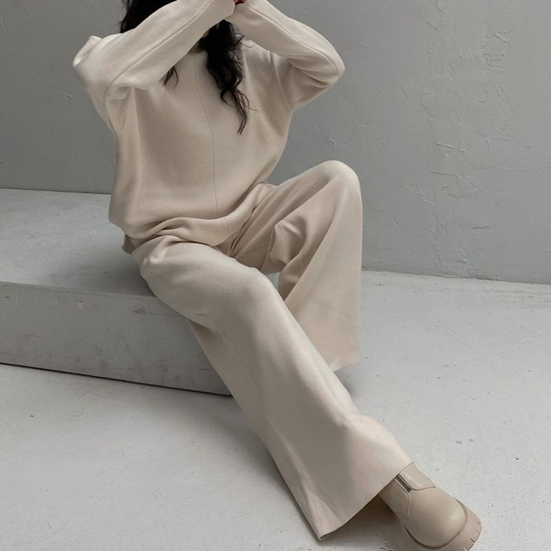 Damen Lässiger Strickanzug mit weitem Schnitt und hohem Kragen Merchesia