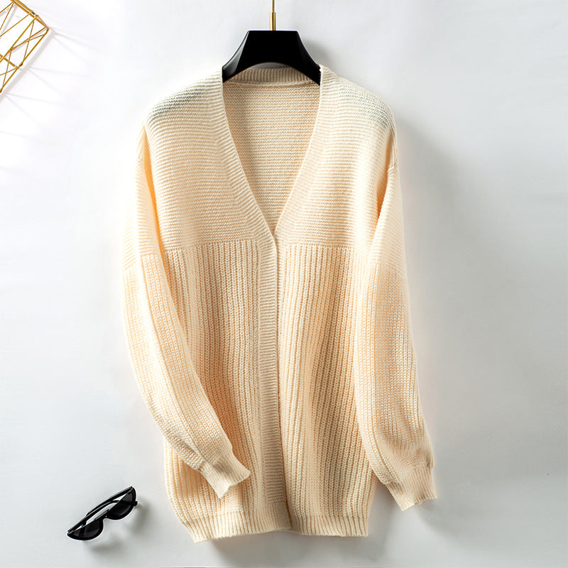 Damen lockere Strickjacke mit V-Ausschnitt und Strukturmuster Merchesia
