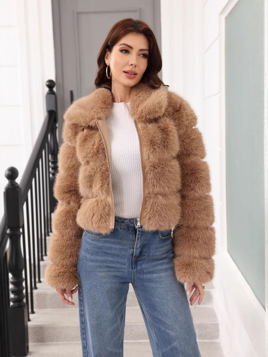- Hochwertiges Material: Aus samtweichem, pflegeleichtem Kunstpelz gefertigt, bietet diese Jacke maximalen Komfort und Wärme.