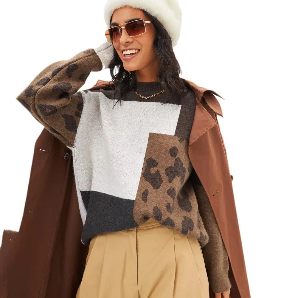 Damen Modischer Pullover mit graphischem Muster und angeschnittenen Ärmeln Merchesia