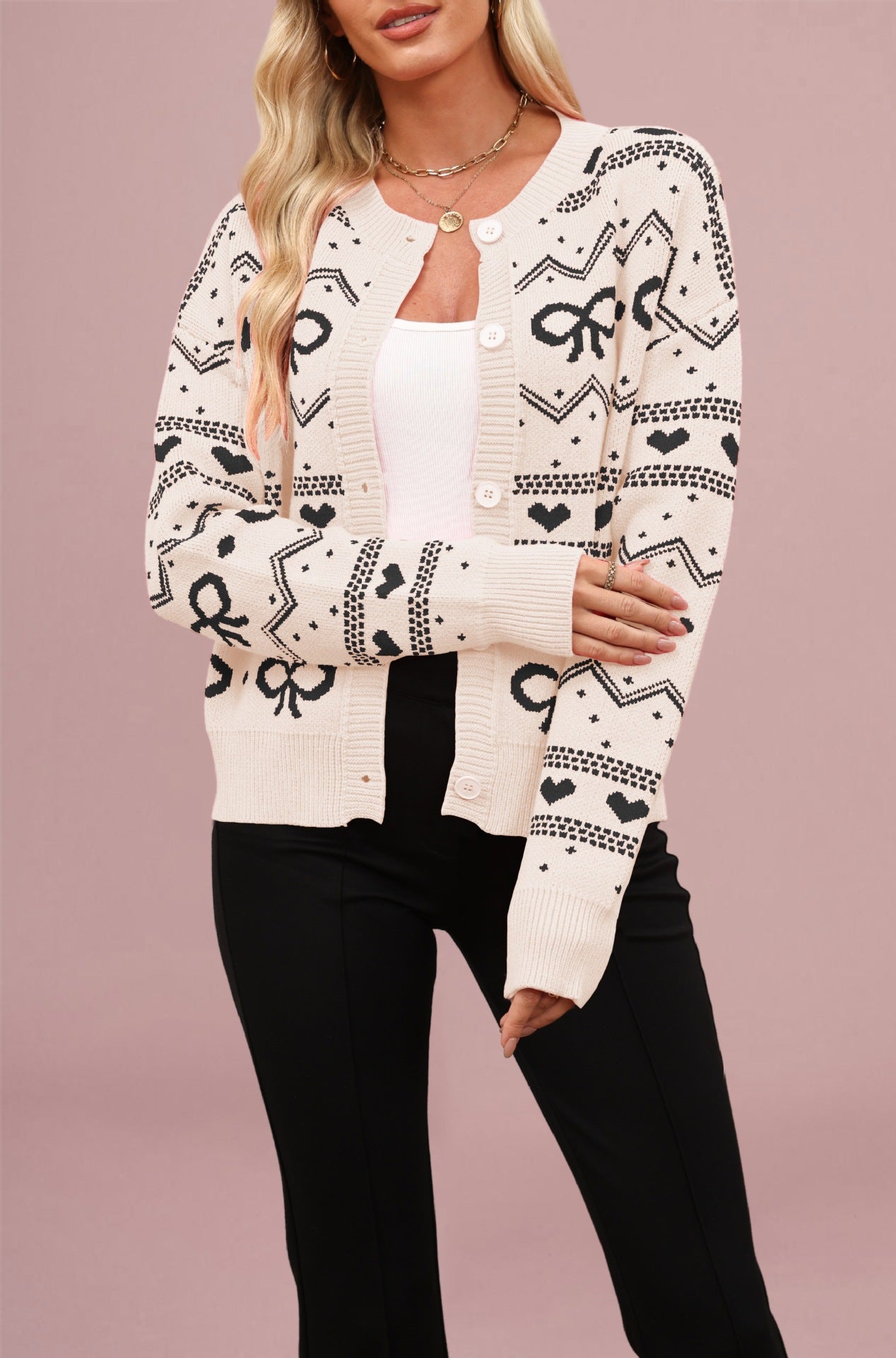 Damen Strickjacke mit verspieltem Herz- und Schleifenmuster Merchesia