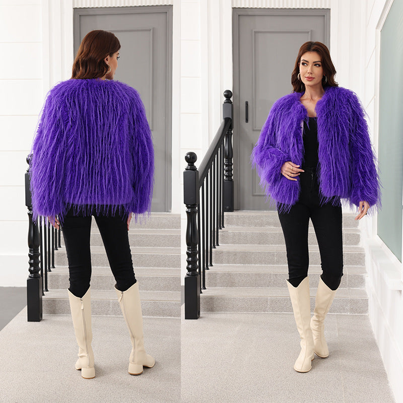 Die Damen Kunstfell Kurzjacke ist das Must-Have für jede modebewusste Frau, die ihren persönlichen Stil zum Ausdruck bringen möchte. Holen Sie sich diesen einzigartigen Artikel und setzen Sie ein modisches Statement!