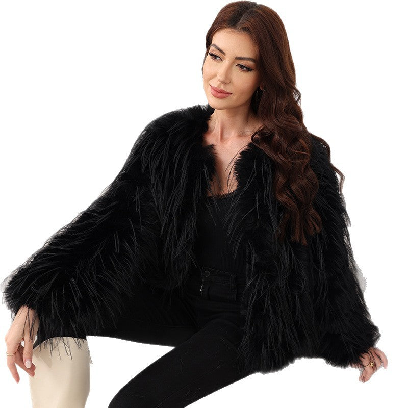 Entdecken Sie die stilvolle weiche Kunstfell Kurzjacke von Merchesia, die Eleganz und Komfort perfekt vereint. Diese exklusive Jacke verfügt über ausgestellte Ärmel, die einen modernen Look verleihen und ideal für besondere Anlässe sind.
