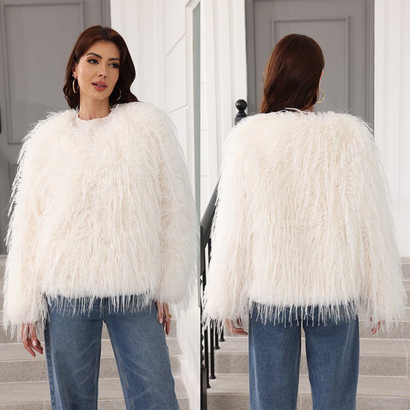 Damen Weicher Kunstfell Kurzjacke mit ausgestellten Ärmeln Merchesia