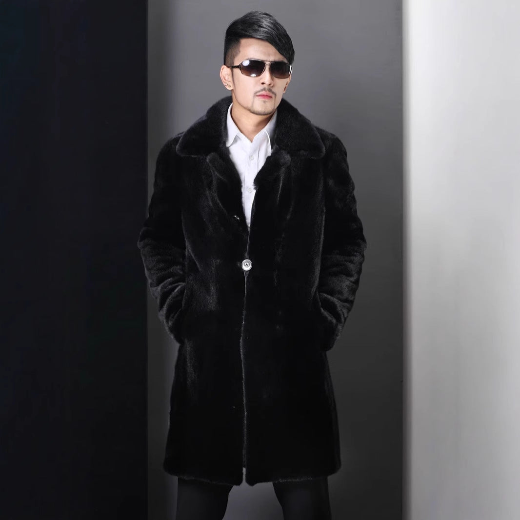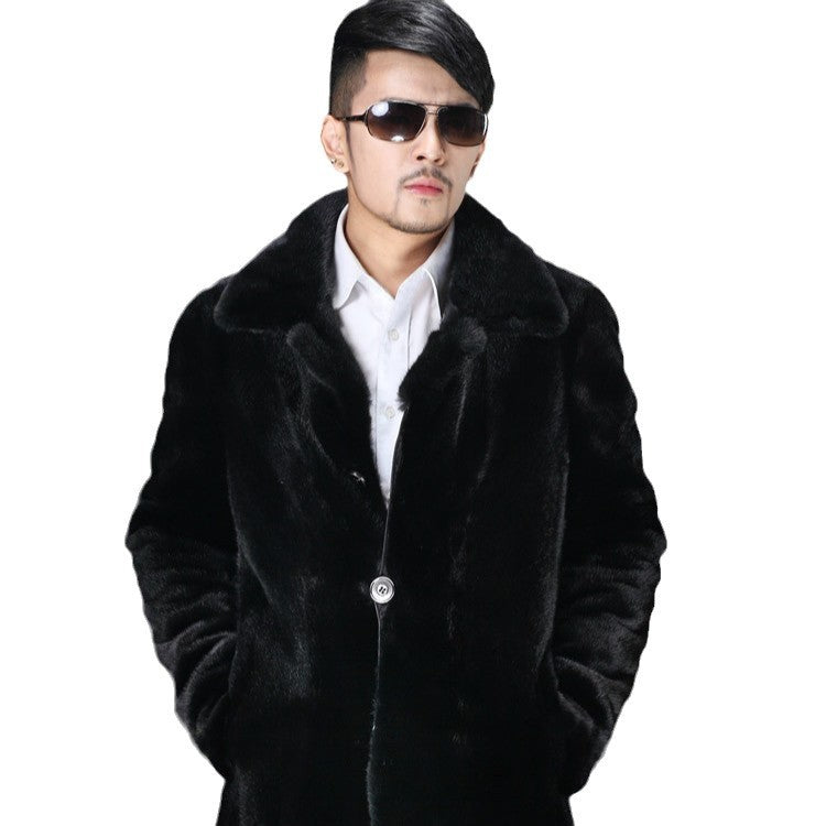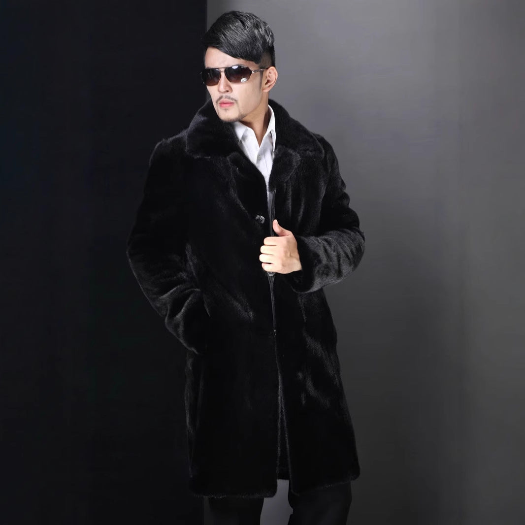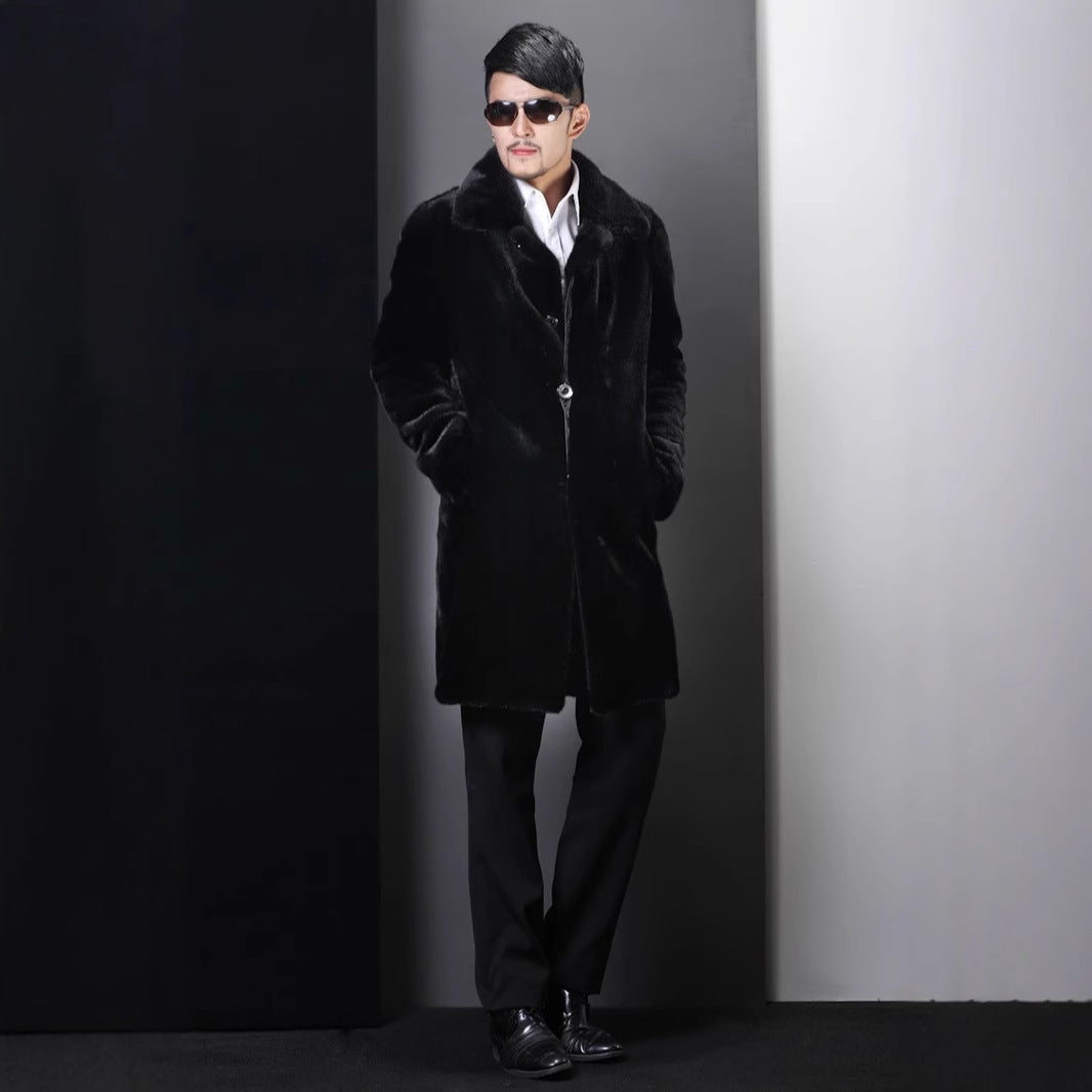 Herren Eleganter Kunstpelzmantel mit tiefem Kragen Merchesia
